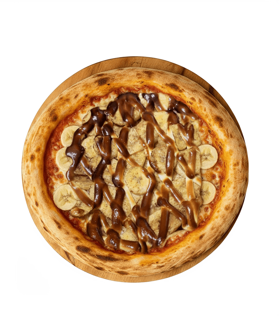 É uma experiência sensorial completa. Massa levemente crocante, muçarela, creme de leite suave, banana, açúcar e canela em pó e vindo para coroar essa obra-prima, irresistível e delicioso chocolate branco, criando um sabor irresistível.